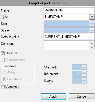 Используйте раскрывающийся список, поддерживаемых DB2 типов данных, чтобы выбрать тот, который вы хотели бы применить к выбранному объекту.
