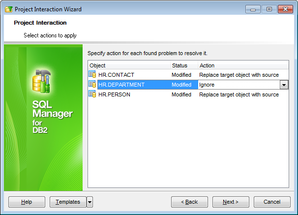 This step of the wizard allows you to specify actions to apply to objects from the source database that do not match with objects from the target project.