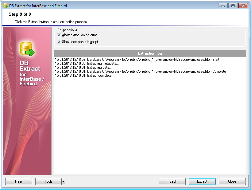 Если все необходимые параметры указаны верно, нажмите кнопку Extract, чтобы начать выполнение операции.