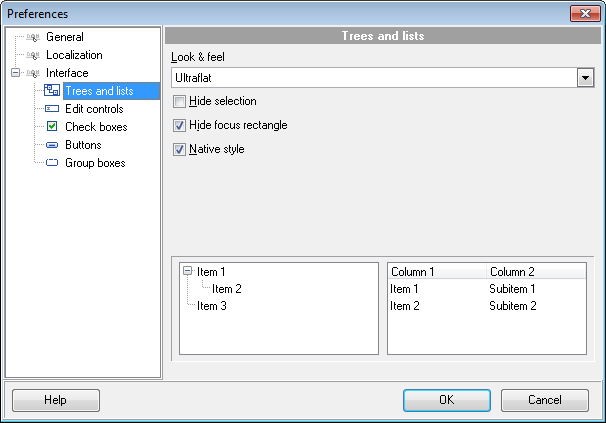 Из раскрывающегося списка Look & Feel выберите один из стандартных стилей оформления списков.