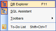 Чтобы показать/скрыть окно проводника используйте команду View | DB Explorer в главном меню или нажмите клавишу F11.