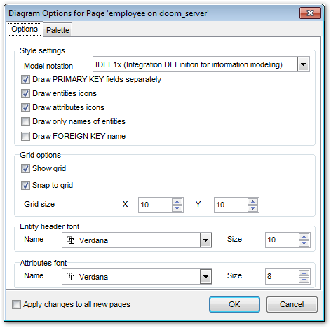 Из раскрывающегося списка Model notation выберите стандарт отображения информации в диаграмме - IDEF1x или IE.