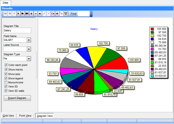 Чтобы построить диаграмму, Вам необходимо выбрать из выпадающего списка Field Name поле, данные из которого станут исходными для диаграммы. В качестве исходных данных могут быть только численные поля.