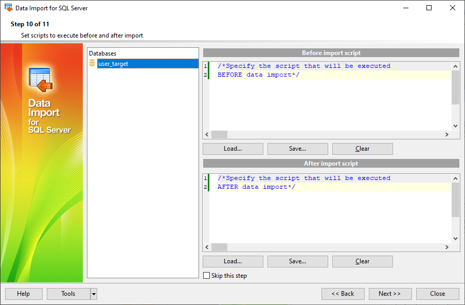 Data Import for SQL Server включает в себя мастер настройки для визуальной установки параметров для различных файлов и консольную утилиту для быстрого импорта данных в таблицы SQL Server.