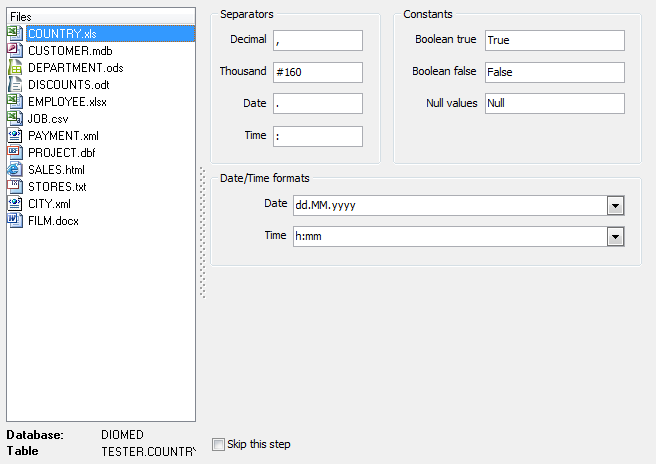На этом шаге необходимо указать вид представления данных для импортируемого файла, выбранного из списка Files. Этот вид должен соответствовать представлению данных в том файле, откуда эти данные импортируются.