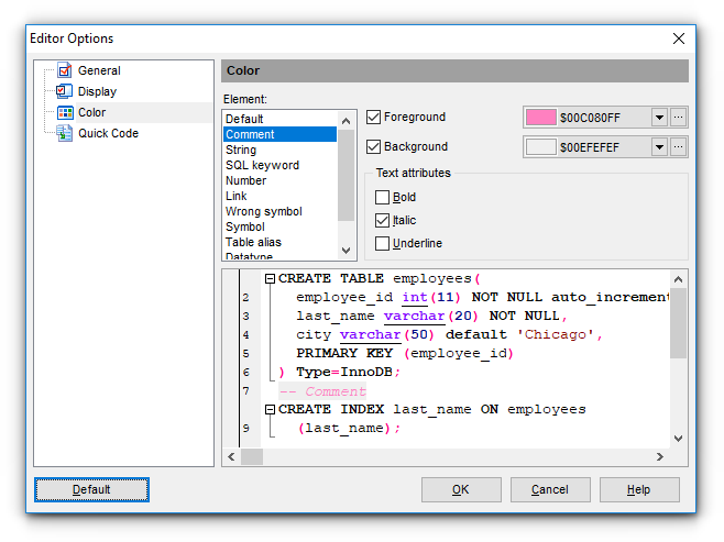 В разделе Text attributes задайте начертание шрифта используемого в редакторе SQL Script: