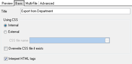 Название выходного HTML файла указывается в поле Title. По умолчанию оно соответствует имени экспортируемого объекта.