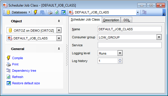 Scheduler Job Class Editor - Editing scheduler job class definition