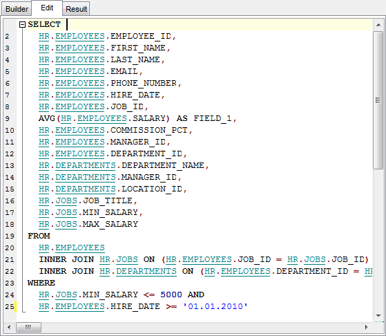 Более подробно про окно редактирования текста SQL.