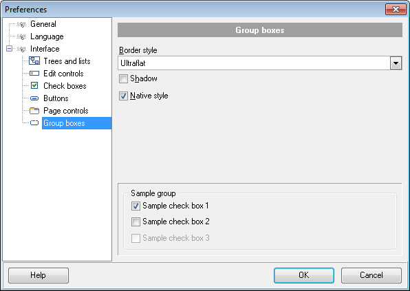Задайте стиль отображения групп кнопок на вкладке Group boxes.