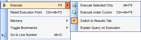 Чтобы выполнить запрос, необходимо нажать Execute на одной из панелей инструментов или в контекстном меню. Если текст запроса содержит ошибки, то программа укажет на это и результат не будет доступен до того, как все ошибки будут исправлены.