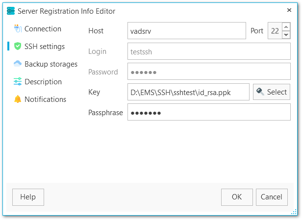 На этой вкладке вы можете просматривать и редактировать информацию о подключении через SSH-сервер.