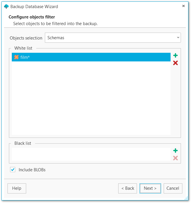 ВАЖНО: Таблицы из белого списка будут добавлены в резервную копию в любом случае, независимо от фильтров схем.