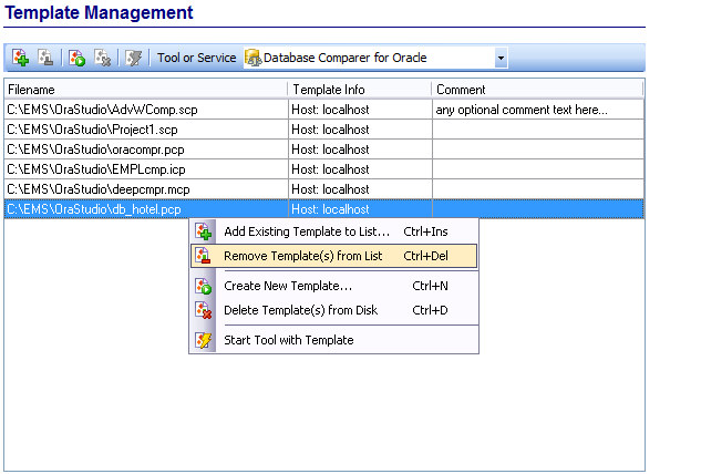 В SQL Management Studio for Oracle при использовании мастера предусмотрена возможность сохранения последовательности действий и параметров в специальных файлах, которые называются шаблоны. В зависимости от утилиты или службы, для которой должен быть создан шаблон, SQL Management Studio for Oracle осуществит запуск соответствующего инструмента или диалога. На последнем шаге соответствующего Мастера можно сохранить настройки в качестве шаблона